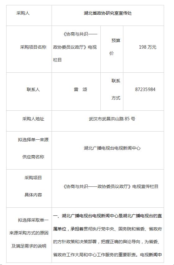 擬選擇采用單一來源采購方式公告